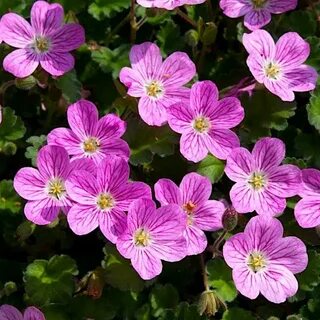 Аистник изменчивый Бишоп Роуз (Erodium variabile Bishop Rose) - Миниатюрное неприхотливое растение высотой 10-15 см, время цветения июнь-июль. Цветки розовые.