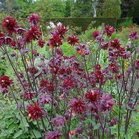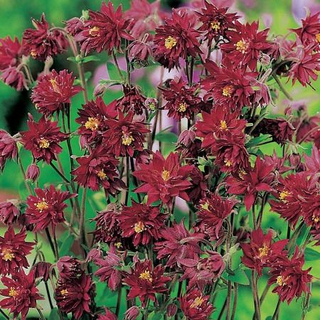 Цветки диаметром 3 см, махровые, тёмные, бордово-красные, напоминают миниатюрные георгины. Высота 40-50 см. Листва красивая, густая. Время цветения июнь- начало июля Название латинское: Aquilegia vulgaris `Barlow Bordeaux` Особенности выращивания и ухода: Аквилегия хорошо растет и цветет в полутени. На солнечных участках цветки мельчают, период цветения сокращается. Мирится с любой садовой почвой, содержащей достаточное количество влаги. Место солнечное или полутенистое. Использование: Аквилегии сажают поодиночке или небольшими группами. Они удачно соседствуют с наперстянками и люпинами. Листва водосборов хорошо сочетается с резными кустами астильбы. Неплохие компаньоны также колокольчики и гравилат. Аквилегии можно использовать как срезочное растение; они неплохо стоят в букетах.
