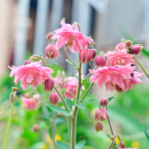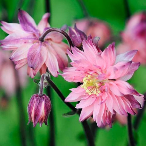 Аквилегию обыкновенную Rose Barlow можно сочетать с другими тенелюбивыми растениями: папоротниками, хостами и медуницей. Её цветы подходят для составления букетов.
