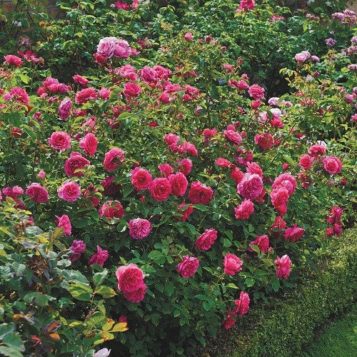 Роза более современного вида нежели большинство английских роз. Небольшие бутоны распускаются в густомахровые, широко раскрытые розетки яркого, густо-розового цвета. По мере старения цветка нижние лепестки отгибаются вниз, образуя помпоновиднй цветок, а окраска меняется: что необычно для английской розы, она становится более насыщенной. Цветки около 8-10 см в диаметре, появляются в большом количестве. Аромат легкий, травянистый. Устойчивый к болезням и густоветвистый куст средних размеров, побеги слегка поникают. Благодаря ярой окраске поможет создать контраст в композиции с розами более нежной окраски. Можно использовать в композициях формального стиля. Сильный и жизнестойкий сорт, который хорошо растет даже в не самых благоприятных условиях.