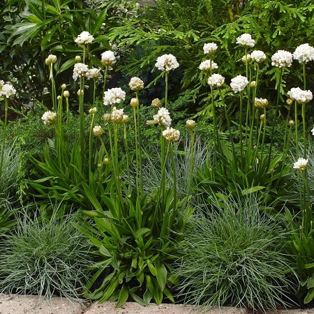 Декоративный сорт армерии с соцветиями белого цвета. Растение многолетнее, образует куртинки. Листья линейные, собраны в прикорневую розетку голубовато-зеленые. Высота растений 20-25см. Цветки в шаровидных соцветиях диаметром 4-5см. Массовое цветение в июне, отдельные цветы появляются до октября.