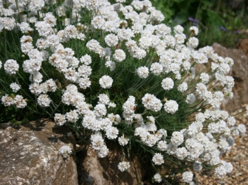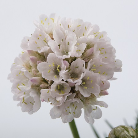 Многолетнее подушковидное растение 15 - 20 см высотой и 15 см в поперечнике, с узкими, линейными, плоскими, тупыми сине-зелеными листьями. Цветки белые, собраны в головчатые соцветия, прикрытые пленчатыми прицветниками. Цветоносы до 20 см высотой, опушенные. Цветет с мая около 70 дней, иногда повторно осенью.