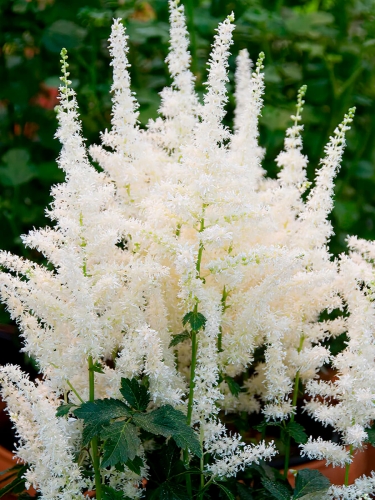 легендарный сорт, который уже много лет остаётся фаворитом садоводов. Его роскошные белоснежные «свечи» буквально светятся в полутени, создавая в саду ощущение чистоты и утончённости. Цветки собраны в крупные, пушистые метёлки длиной до 35 см — они выглядят как облака, зависшие над плотным тёмно-зелёным кустом.