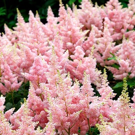 Замечательный сорт астильбы. Листья темно-зеленые, блестящие. Цветки собраны в пушистые пирамидальные соцветия, сливочно-розовые, с приятным ароматом.