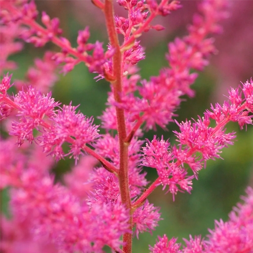 Этот сорт астильбы очень популярен среди садоводов. Высота растения во время цветения составляет 80–100 см. Цветёт в июле и августе. У растения мелкие цветки фиолетово-аметистового цвета, которые собраны в рыхлые метёлки. Цветение обильное и долгое.