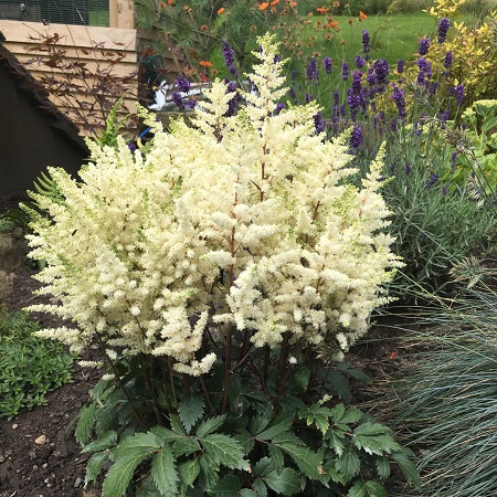Компактное корневищное растение высотой 30-40 см . Листья сложноперистые, зелёные, высотой до 20 см. Цветки мелкие, белые, в широких пирамидальных метёлках. Период цветения с июля по август.