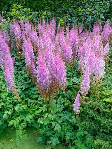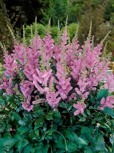 Многолетник с прямыми стройными цветоносами и сложно-перистыми, блестящими листьями. Цветет позже всех остальных астильб, начиная с августа. Соцветия - крупные ажурные метелки лилово-розового цвета. Отличается более низким ростом, 30-40 см, нетребовательностью к влажности почвы.
