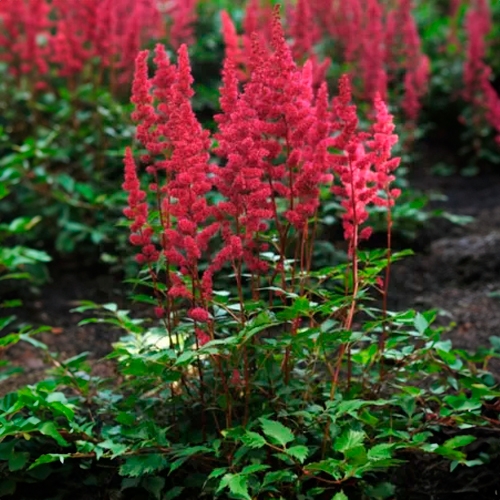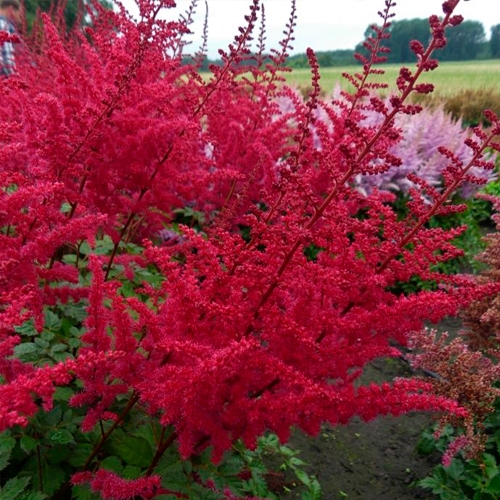 Впечатляющее декоративное многолетнее растение, отличающееся яркими красными цветами и высоким ростом. Растение достигает высоты 60-80 см, что делает его одним из самых высоких сортов астильбы. Листья ярко-зеленые, перисто-рассеченные, создающие красивый фон для цветков. В июле-августе оно цветет, образуя огромные метелки ярко-красных цветков, которые привлекают внимание и становятся центром композиции в саду.