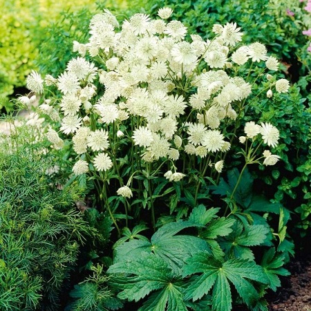 Использование: Астранции прекрасно выглядят в групповых посадках вместе с лилейниками, маками, ирисами, колокольчиками, водосбором, геранью, скабиозой, папоротниками и декоративными травами. Астранция практически не повреждается болезнями и вредителями. Подходит для срезки и засушивания.