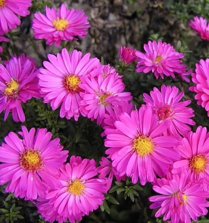 Многолетнее травянистое растение с прямостоячими, сильно ветвистыми стеблями, образующими почти полушаровидные кустики высотой 30-40 см. Листья сидячие, ланцетные, темно-зеленые, многочисленные. Сорт полумахровый, цветки яркие малиново-розовые. Время цветения август-октябрь.