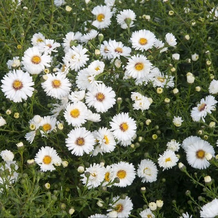 Многолетнее растение. Высота до 40-50 см. Цветы крупные (до 6 см), белоснежные, махровые, цветение очень обильное и продолжительное. Цветет, начиная с конца августа, осенью 25-30 дней. Название латинское: Aster Novi-belgii White Ladies Особенности выращивания и ухода: Не требовательное к условиям выращивания растение. Не выносит переувлажнения . Требует солнечного местоположения и обычных садовых почв Использование: Незаменимое растение для создания цветников, декоративных в осенний период. Прекрасно смотриться при посадке группами
