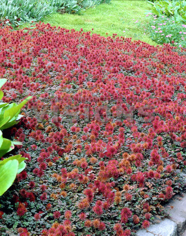 Многолетник с округлыми коричневато-зелеными листьями с острыми зубчатыми краями. Прекрасное почвопокровное растение. Разрастаясь образует очень плотное покрытие. В июне над листвой возвышаются цветоносы (5 см.) с белыми, идеально круглыми шариками, которые, отцветая, превращаются в красно-бурые "колючки". Название латинское: Acaena microphylla 'Kupferteppich' Особенности выращивания и ухода: Под зиму уходит с зелеными листьями. Хотя ацене и дают 6-ю, рискованную у нас зону, благодаря маленькому росту она вполне сносно зимует под снегом. Весной на растении наблюдаются пятна выпревания, однако они быстро зарастают. Отлично развивается и разрастается на полном солнце. Использование: Годится и для затененных мест, хотя в этом случае растение не будет таким пышным.