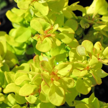 Миниатюрный барбарис с золотисто-желтой листвой. Высота кустарника до 40см, диаметр до 60см. Медленно растущий. Очень компактный, сохраняет сферическую форму без формирующей обрезки.