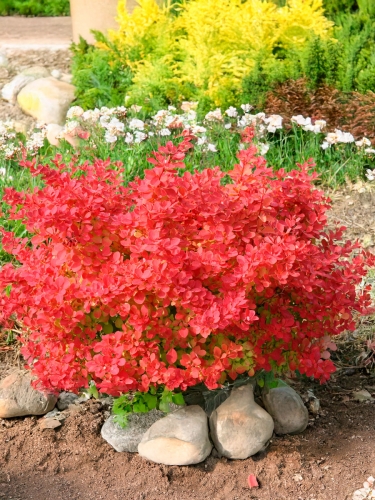 Компактный декоративный кустарник с насыщенной пурпурно-фиолетовой окраской листвы, сохраняющейся на протяжении всего сезона. Отличается плотной, подушковидной кроной и миниатюрными размерами, благодаря чему идеально подходит для бордюров, рокариев и контейнерного озеленения.