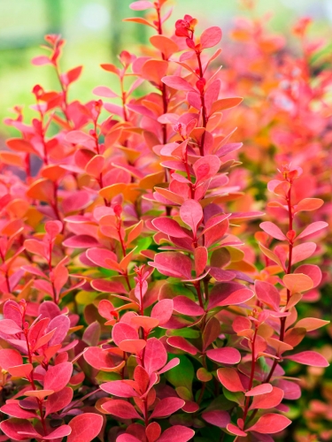 Барбарис Оранж Рокет — эффектный вертикальный акцент для любого сада. Идеален для современных ландшафтов, бордюров и контейнерных композиций, где важны структура и насыщенный цвет.