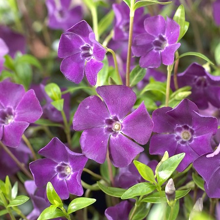 Уход: очень отзывчивы на подкормки органическими и минеральными удобрениями. В качестве удобрения лучше использовать перегной, компост или листовую землю. Для лучшего кущения необходима прищипка старых и молодых побегов. Зимостоек, но молодые побеги иногда повреждаются весенними заморозками. Барвинок опушенный желательно на зиму укрывать небольшим слоем листа. Барвинки - прекрасные почвопокровные растения. Барвинок малый, способен образовывать чрезвычайно плотные однородные ковры. Однажды захватив подходящий ему плацдарм, он уже никому его не уступает. «Поколебать» его могут только новые условия, например резкое изменение освещенности.Покрытием из барвинка хорошо декорируются и одновременно укрепляются некрутые голые склоны. Он может тут соседствовать со сквозистыми кустарниками, не создавая помех их росту, а плотное хвойное просто «обтечет». Барвинок может выступить в качестве ампельного растения, свешиваясь с подпорной стенки, ему идет соседство камней. Пестролистые формы способны служить колоритными пятнами на передних планах цветников, солировать наряду с красивоцветущими многолетниками и кустарниками, создавать фоновые заросли в подножии более высоких растений.