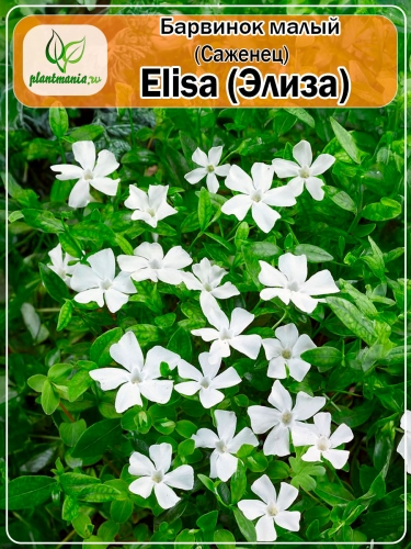 Саженец барвинка малого Elisa (Элиза) — изысканный вечнозелёный почвопокровный сорт с чисто-белыми цветками и аккуратной компактной формой. Один из самых утончённых саженцев многолетников для сада, создающий нежные светлые акценты в тенистых местах и на переднем плане цветников. Цветёт обильно весной и нередко повторно летом, украшая сад свежестью и лёгкостью.