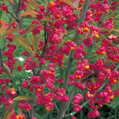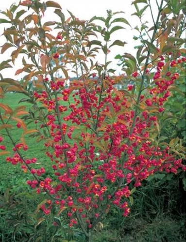 Высокий кустарник, высотой до 4-5 м. Больше всего ценится за огненно-красную осеннюю окраску листьев и очень декоративные плоды, которые состоят из красных коробочек и ярких пурпурно-красных или розовых семян, свисающих из коробочек на коротких нитях. Плоды появляются в конце августа и держатся на растении до середины декабря. Латинское название: Euonymus europaea