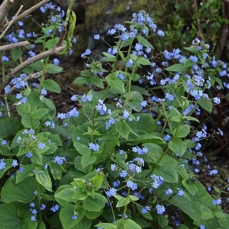Очень давно используемое садовое растение. Совершенно неприхотливо и зимостойко. Крупные округлые листья в мае украшают ажурные соцветия, состоящие из нежно-голубых, похожих на незубудки цветочков, за что бруннера получила свое второе народное название "многолетняя незабудка". Высота растения в цветущем состоянии до 60 см. Время цветения - май Название латинское: Bergenia macrophylla