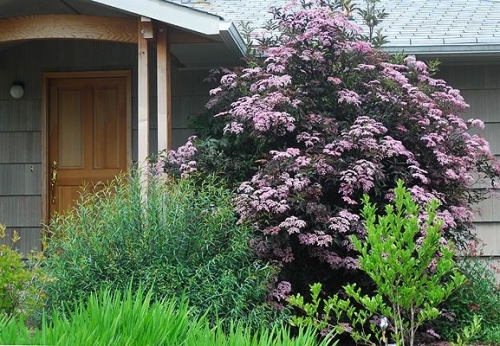 Темнолистный сорт бузины черной, высота к 10-ти годам 3 м. Листья чёрно-бордовые. Цветки мелкие, белые, собраны в крупные щитковидные соцветия, которые очень ароматны. Плоды - черные ягоды. Время цветения: конец июня-начало июля.