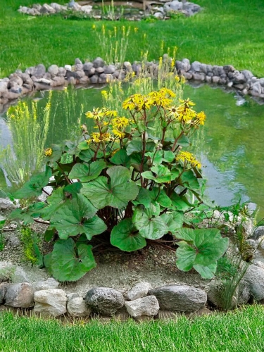 Совет: бузульник требует регулярного полива, особенно в жаркие периоды. В засуху листья могут поникать, поэтому важно сохранять равномерную влажность почвы и мульчировать прикорневую зону. Старые листья рекомендуется обрезать весной, после начала роста новых побегов.