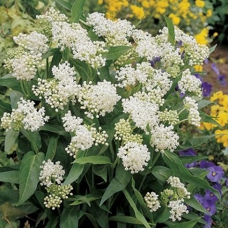 Высота растения 70-100 см. Листья удлиненные, зеленые, слегка волосистые. Цветки белые, собраны в зонтиковидные соцветия диаметром до 6 см.Цветение июль-август, длится 30-35 дней.Цветки обладают запахом свежего шоколадного масла.Хороший медонос, притягивает бабочек. Название латинское: Asclepias incarnata "Ice Ballet" Особенности выращивания и ухода: Неприхотливое растение, растет практически в любой почве, но для лучшего развития предпочтительны слабокислые суглинки. Место, где будет расти ваточник, должно быть солнечным, без близко расположенных грунтовых вод. Использование: Ваточник хорошо растет рядом практически со всеми растениями, но наилучшее сочетание образуется с луговиком, перловниками и мискантусами. Лучше всего подходит для посадок отдельными группами. Растение интересно своими соцветиями, обладающие тонким ароматом.