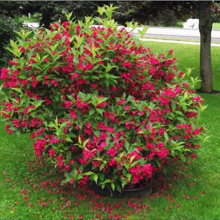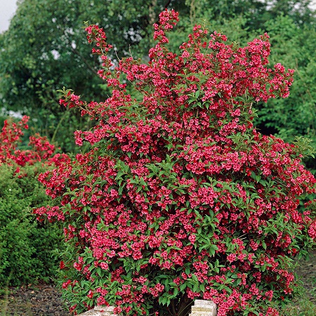 Листопадный декоративный компактный кустарник со свисающими ветвями, высотой и шириной 1,5 м. Ежегодный прирост 20 см. Листья ярко-зеленые, эллиптические. Цветки колокольчатые, малиново-красные, цветет в мае-июне, и повторно в августе-сентябре. Weigela florida Red Prince предпочитает солнечные места, может расти в полутени. В тени не цветет, и побеги не одревесневают. Почвы должны быть плодородными, влажными, хорошо дренированными. На сильно переувлажненных почвах не цветет. Лучше выбирать закрытые места от ветров, потому что листья и цветы могут повреждаться от ветра. На зиму необходимо укрывать растение. После листопада кусты связывают и пригибают к земле, укрывают лапником или лутрасилом. Весной удаляют поврежденные побеги. Обрезку производят каждые 2-3 года сразу после цветения. Вейгела цветущая Ред принц используется в одиночных и групповых композициях.