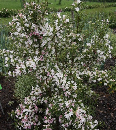 Декоративно цветущий, листопадный кустарник с вертикальными побегами, высотой до 1м. Листья эллиптические, светло-зеленые, с аккуратной белой окантовкой. Осенью окантовка становится бело-красной. Цветки белые или розовые, распускаются на одном и том же кусте, цветет обильно в июне-июле.