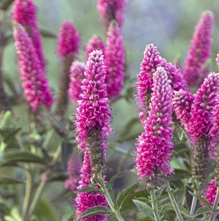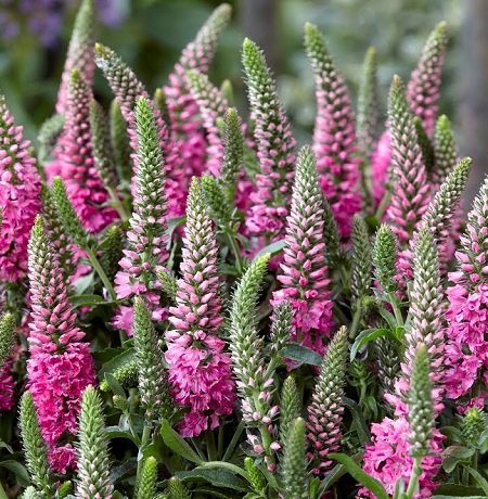 Компактное травянистое многолетнее растение с темно-зелеными листьями, высотой 40-50 см. Соцветия одиночные, кисти достаточно густые, около 10-30 сантиметров. Цветовая палитра синяя, ярко-розовая. Цветет с июня очень обильно, на протяжении 40 дней. Название латинское: Veronica spicata 'Anniversary Rose' Особенности выращивания и ухода: Неприхотливое, зимостойкое, не переносит застоя воды и предпочитает исключительно солнечное место для посадки. Применение: Широко используется в цветочном оформлении для создания миксбордеров, клумб и рабаток. Хорошо смотрится при посадке группами.