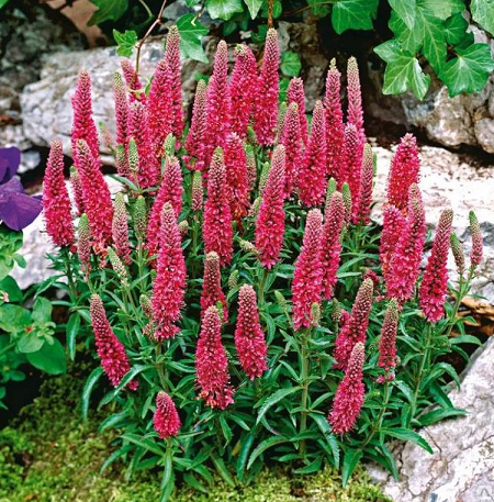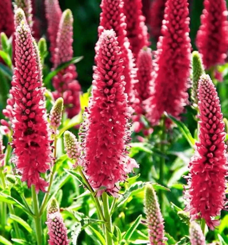Один из наиболее заметных и ценных сортов вероники колосковой, он славится своими темно-зелеными удлиненными плотными листьями и крупными, по сравнению с кустом даже огромными соцветиями в виде прямостоячих кистей ярко-розового цвета с малиновыми и белыми вкраплениями. Цветет Хайдекинд обычно очень обильно, на протяжении 40 дней, с июня. Название латинское: Veronica spicata Heidekind Особенности выращивания и ухода: Нуждается в хорошо дренируемых, богатых гумусом почвах. Может расти как на солнце, так и в полутени. Зимостойко. Использование: Широко используется в цветочном оформлении для создания миксбордеров, клумб и рабаток. Хорошо смотрится при посадке группами.