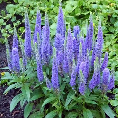 Прелестный маленький сорт вероники колосковой высотой 20-25 см. Мелкие цветы насыщенно-синего цвета, собраны в узкие длинные коловидные соцветия. Листья узко-овальные, зубчатые. Цветение: июль. После обрезки отцветших соцветий зацветает второй раз за сезон.