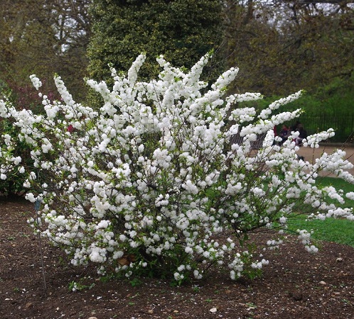 Красивоцветущий кустарник высотой 100-150 см. Листья изящные, с сильно вытянутой вершиной, осенью приобретают жёлто-красный оттенок. Цветки густомахровые, снежно-белые, ароматные, похожими на миниатюрные розочки. Цветение продолжительное (20 дней). Период цветения май-июнь.