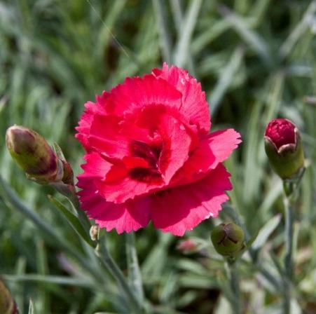 Растение многолетнее травянистое, до 40 см высотой, Листья зеленые, продолговато-линейные. Цветки полумахровые, темно-красного цвета, иногда бордовые, с приятным ароматом, до 3 см в диаметре, одиночные. Цветет с июня 25-30 дней.