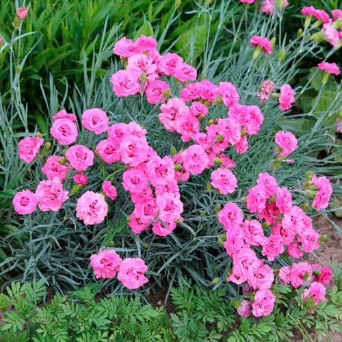 Многолетнее травянистое растение высотой 20–30 см, образует плотные сизо-зелёные подушковидные куртины. Листья узкие, линейные, с сизым налётом. Цветки нежно-розовые (1.5–2 см в диаметре), махровые или полумахровые, с бахромчатыми лепестками и приятным пряным ароматом; цветёт в мае–июне, иногда повторно в конце лета.