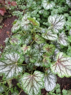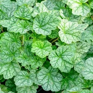Гейхера Dales Strain – прекрасный зимостойкий многолетник для сада. Его зеленые листья с серебристо-синим напылением и четкими прожилками образуют невысокие плотные розетки высотой до 30 см. Темно-красная серединка и имеющая лиловый оттенок обратная сторона усиливают эффект декоративности. Цветение наступает в июне и в течение месяца над розеткой выбрасываются высокие цветоносы с мелкими невзрачными цветочками зеленовато-бежевого цвета.