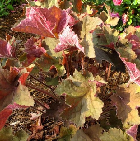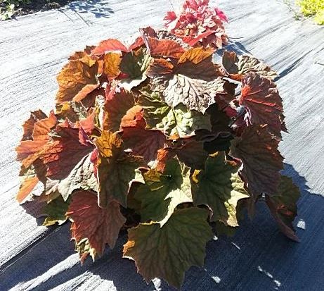 Листья большие, шоколадно-зелёные с пурпурно-красной обратной стороной.. Высота около 40-60 см, диаметр 40-50 см. Цветок маленький, беловато- розовый. Цветет с июня по начало августа. Название латинское: Heuchera Big Top Bronze Особенности выращивания и ухода: Неприхотлива к почвам и климату, устойчива к морозам и болезням, главное – не допускать застоя воды в почве. Месторасположение - солнце, полутень. Зона зимостойкости: 4 (-35 ° С). Использование: Очень популярное в последнее время растение. Широко используется в миксбордерах, клумбах, бордюрах и т.д. Хорошо смотриться и как солитерное растение, и при посадке большими группами.