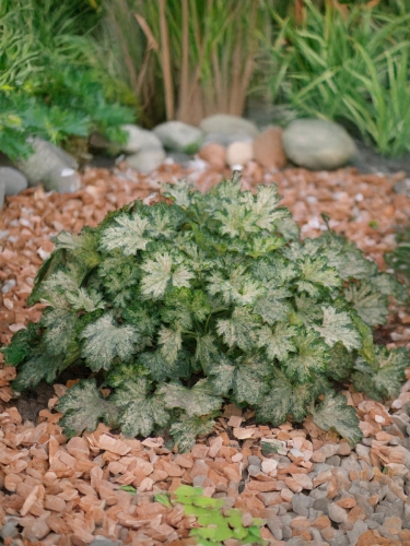 Изящный сорт с серебристо-зелёными листьями и тёмно-зелёными прожилками, создающими мраморный эффект. Формирует плотную, аккуратную куртину высотой до 25 см и шириной около 40 см. Листва выглядит словно покрытая росой, мягко отражая свет и создавая эффект внутреннего свечения.