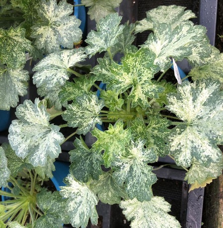Среднего размера гейхера, листва темно-зеленая мраморная с бело-кремовыми брызгами и розовыми прожилками.. Цветет непрерывно летом, цветеносы длинные, крепкие, цветки ярко красные. Высота 20 см, диаметр куста 40 см.
