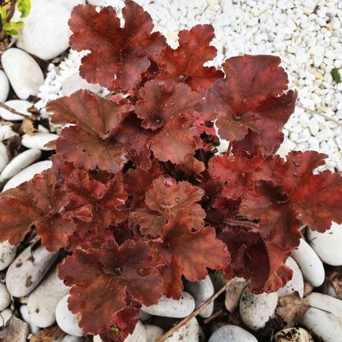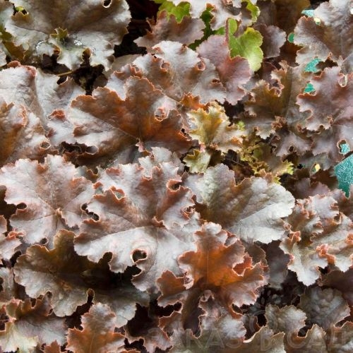 Эффектный сорт гейхеры. Высота растения в нецветущем состоянии 20-30 см. Высота цветоносов 30-40 см. Листья кофейно-коричневого цвета с сильно рассеченными краями. Цветки довольно невзрачные. Цветет в июле - августе.