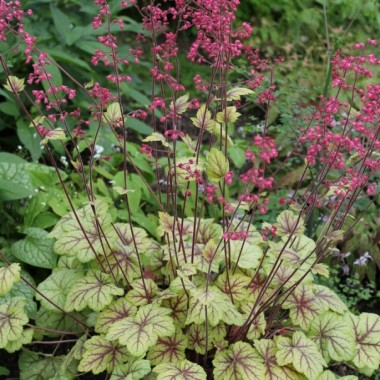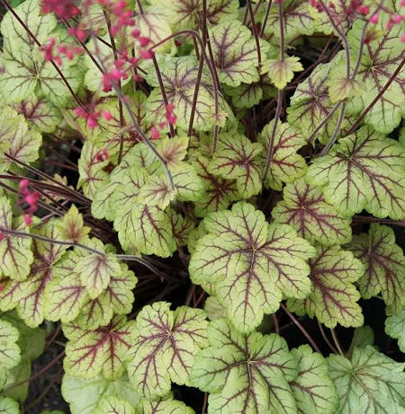 Сложный гибрид.Получен Thierry Delabroye в 2012г. Большие листья оттенка "зеленый лайм" с красно-черными прожилками, розовые осенью и зимой. Усиление цвета в холода. Ярко-розовые цветы. Сорт интересен тем, что ближе к осени, на одном растении присутствуют листья с красно-черными прожилками с основным фоном разных оттенков-зеленые, желтые, бордовые и ярко-розовые. Цветение - июль - сентябрь. Высота 30см, Ширина 40 см. Устойчива к сильной жаре и холоду.