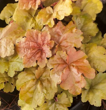 Creme Brulee - гейхера в персиковых тонах. В течение сезона оттенки меняются от красноватых и оранжевых до золотистых и зеленоватых. Листья имеют слегка гофрированный край, особенно осенью. Превосходно сочетается сочетается с другими сортами гейхер и с различными моголетниками. Соцветия имеют нежный кремовый оттенок.
