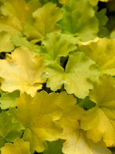 Компактный сорт с яркой лимонно-жёлтой листвой, создающей ощущение солнечного света даже в тенистых уголках сада. Формирует плотную куртину высотой до 25 см и шириной около 35 см. Листья округло-лопастные, бархатистые, с волнистым краем и лёгким салатовым оттенком. Цвет сохраняется насыщенным весь сезон и не выгорает даже на солнце.