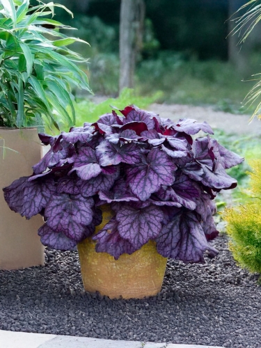 Гейхера 'Wild Rose' поражает насыщенным пурпурно-розовым оттенком листвы и создаёт эффектные цветовые акценты в любом саду.