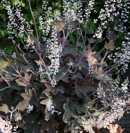 Высота растения 25-30 см, Период цветения июнь- июль, Листья красивые, матовые, шоколадного цвета, цветки чисто белые.
