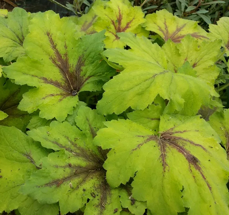 Красивый редкий сорт с резными листьями. В центре рисунок пурпурного цвета. Цветки собраны в метелки, кремово-белого цвета. Цветение обильное. Время цветения bюнь-июль, высота взрослого растения 25-35 см Диаметр куста взрослого растения 40 см. Название латинское: Heucherella 'Art Nouveau' Особенности выращивания и ухода: Лучше всего растут в полутени на богатых, хорошо дренированных почвах, в засуху обязателен дополнительный полив, но застоя влаги необходимо избегать. С возрастом корневище приподнимается над землёй, для сохранения декоративных свойств и жизненной силы взрослому растению необходимо окучивание лёгким плодородным субстратом. Применение: В саду гейхереллу испоользуют для групповых смешанных и одновидовых посадках, при устройстве, бордюров, каменистых садов.