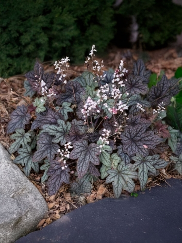 Гейхерелла 'Infinity' придаёт саду насыщенные розовые акценты и создаёт впечатление тепла и яркости даже в тенистых уголках участка.