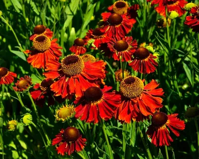 Растение высотой до 110 см. Стебли прямые очень прочные, устойчивые к ветру. Несмотря на большую высоту, растение не требует подвязки. Цветет очень обильно и продолжительно с августа по октябрь. Соцветия-корзинки, насыщенно-красные с оранжевым оттенком. Название латинское: Helenium hybride Moerheim Beauty Особенности выращивания и ухода: Высаживают на солнечных местах.В сухую и жаркую погоду нуждается в обильном поливе. Зимостойкий. Продлить цветение можно, укоротив часть стеблей в июне. На зиму отцветшие стебли обрезают до земли. Использование: На заднем плане больших цветников, около декоративных кустарников, группами или одиночно.