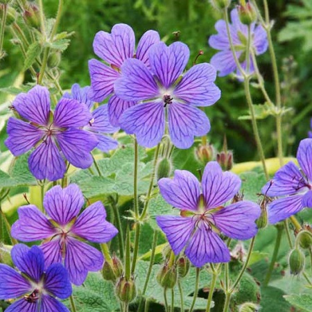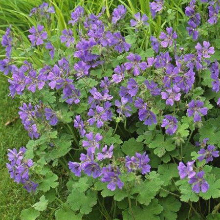 Этот сорт герани отличается красивой бархатистой листвой, собранной в аккуратные розетки. Цветки голубые, цветение начинаетсяв начале-середине июля и длиться примерно 3 недели. В сентябре листва приобретает красивую осеннюю окраску. Высота растения 45 см, диаметр куста до 100 см.