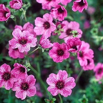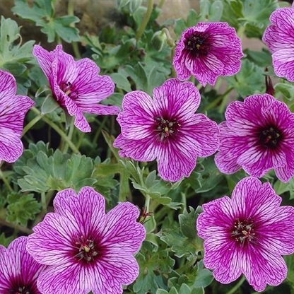 Миниатюрные кустики, высота растения 15 см, с опушёнными, сильно рассечёнными, красивыми, седовато-зелёными листьями. Цветки лавандо-розовые с чётко выражеными прожилками и очень тёмно-бордовым глазком. Цветет все лето.Великолепна выглядит весь сезон. Это настоящий многолетник, способный цвести без пересадки до 15 лет. Кусты герани хороши и ранней весной, когда зеленеют перезимовавшие листья, и летом, во время цветения, и осенью. В это время стебли, черешки листьев и нижние листья краснеют, а остальная листва сверкает яркой зеленью.