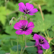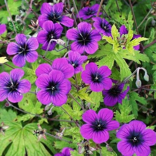 Многолетник высотой 40-60 см.Листва золотисто-зелёная, глубоко разрезанная, пятилопастная. Цветки диаметром 4 см, чашевидные, яркие, красно-фиолетовые с чёрным центром.Период цветения июнь август.